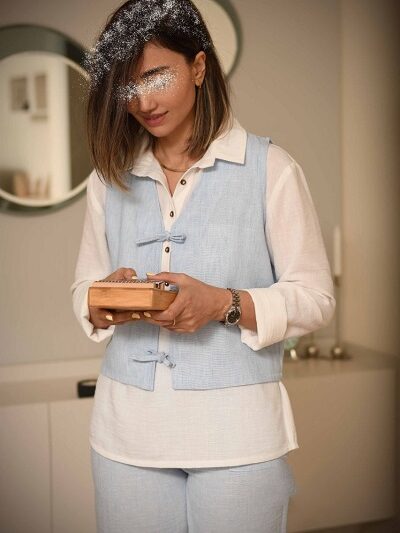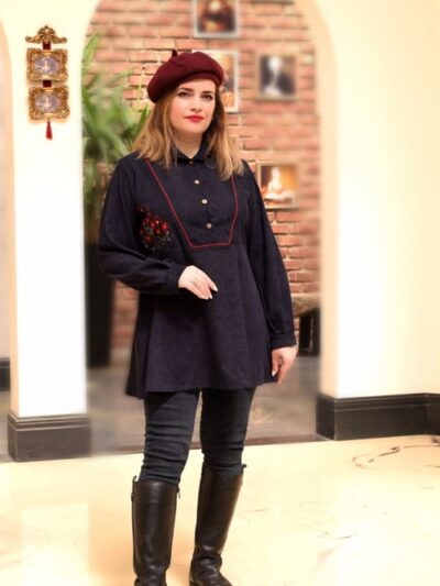 جنس شومیز: سوفیا(نواردوزی شده) جنس دامن: پشمی ضخیم قد دامن 85 دوسایزه سایز لارج مناسب سایز 36تا40 سایزxl مناسب سایز